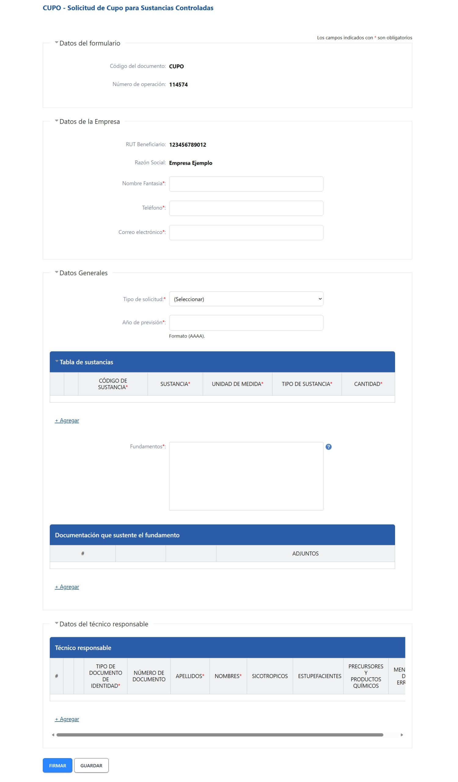 Es el trámite por el cual las empresas usuarias de la División Sustancias Controladas notifican los cupos de sustancias controladas que dispondrán en un año o solicitan aumento de los cupos ya existentes para precursores y productos químicos, sicotrópicos o estupefacientes.