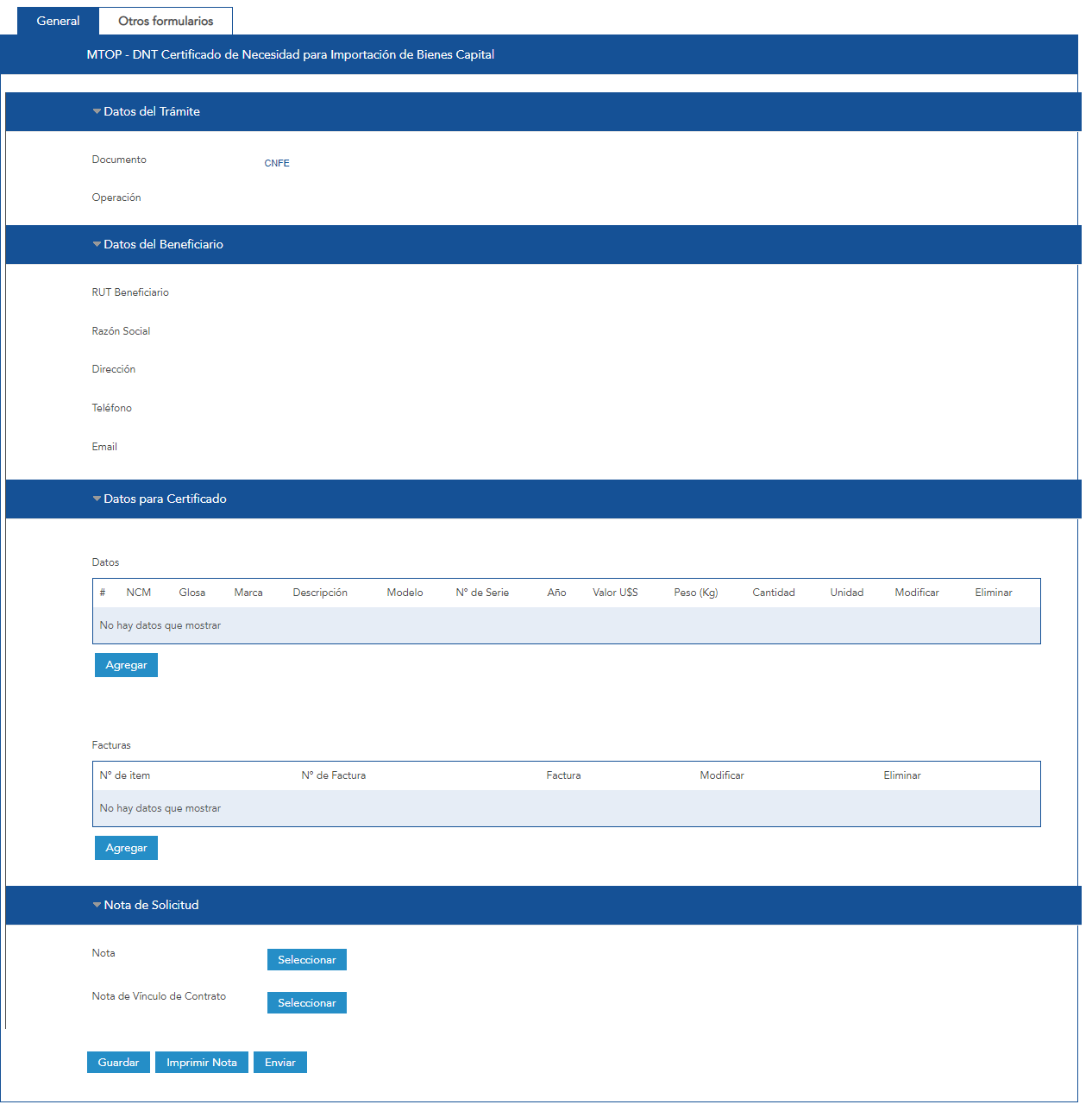 Consiste en la solicitud de importación de Bienes de Capital con destino a la ejecución de obras de Interés Público, ante la Dirección Nacional de Transporte Ferroviario del Ministerio de Transporte y Obras Públicas.