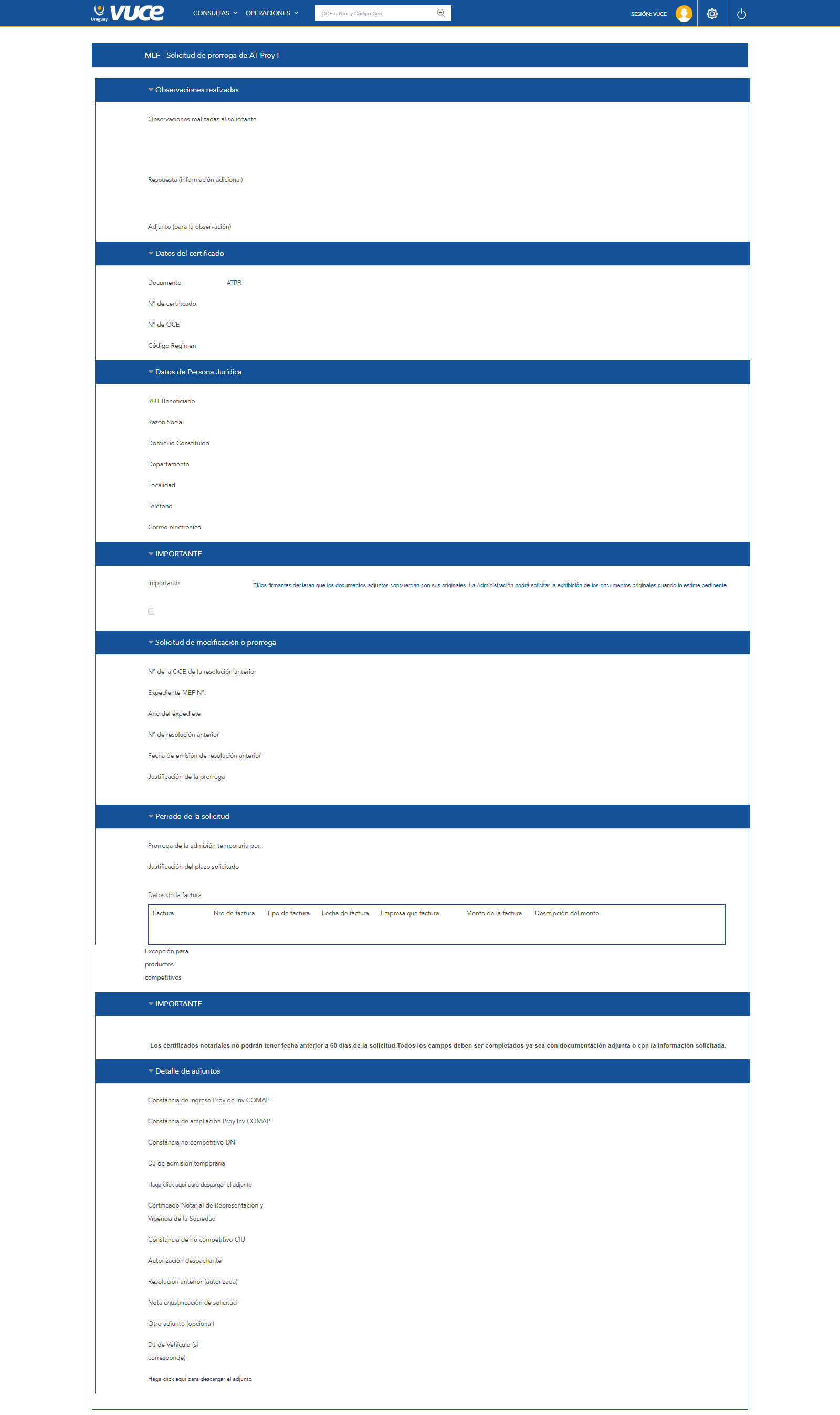 Consiste en la solicitud de la autorización de prórroga de Admisión Temporaria en el marco de un proyecto de inversión presentado ante COMAP, expedida por la Asesoría Política Comercial del Ministerio de Economía y Finanzas.