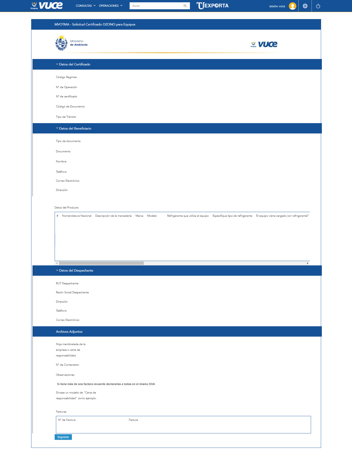 Consiste en la solicitud del Certificado para equipos que pueden contener sustancias agotadoras de la capa de ozono, otorgado por la División Cambio Climático del Ministerio de Ambiente.