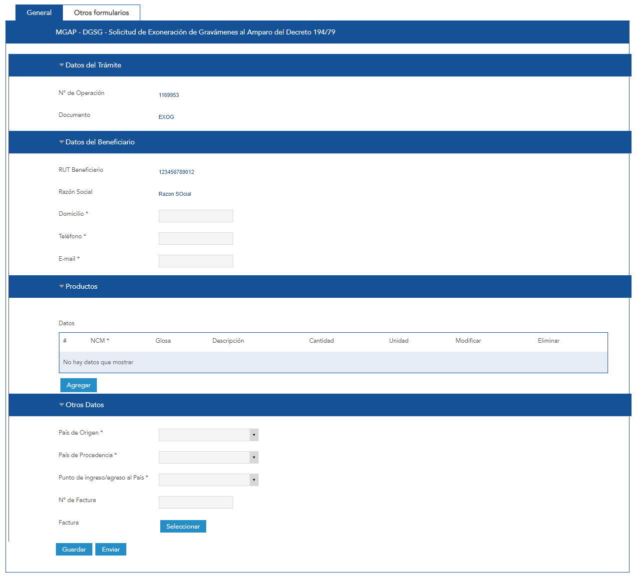 Consiste en la solicitud de la exoneración de gravámenes amparados en la normativa que prevé el Decreto 194/79, modificativos y concordantes, otorgada por la Dirección General de Servicios Ganaderos del Ministerio de Ganadería, Agricultura y Pesca.