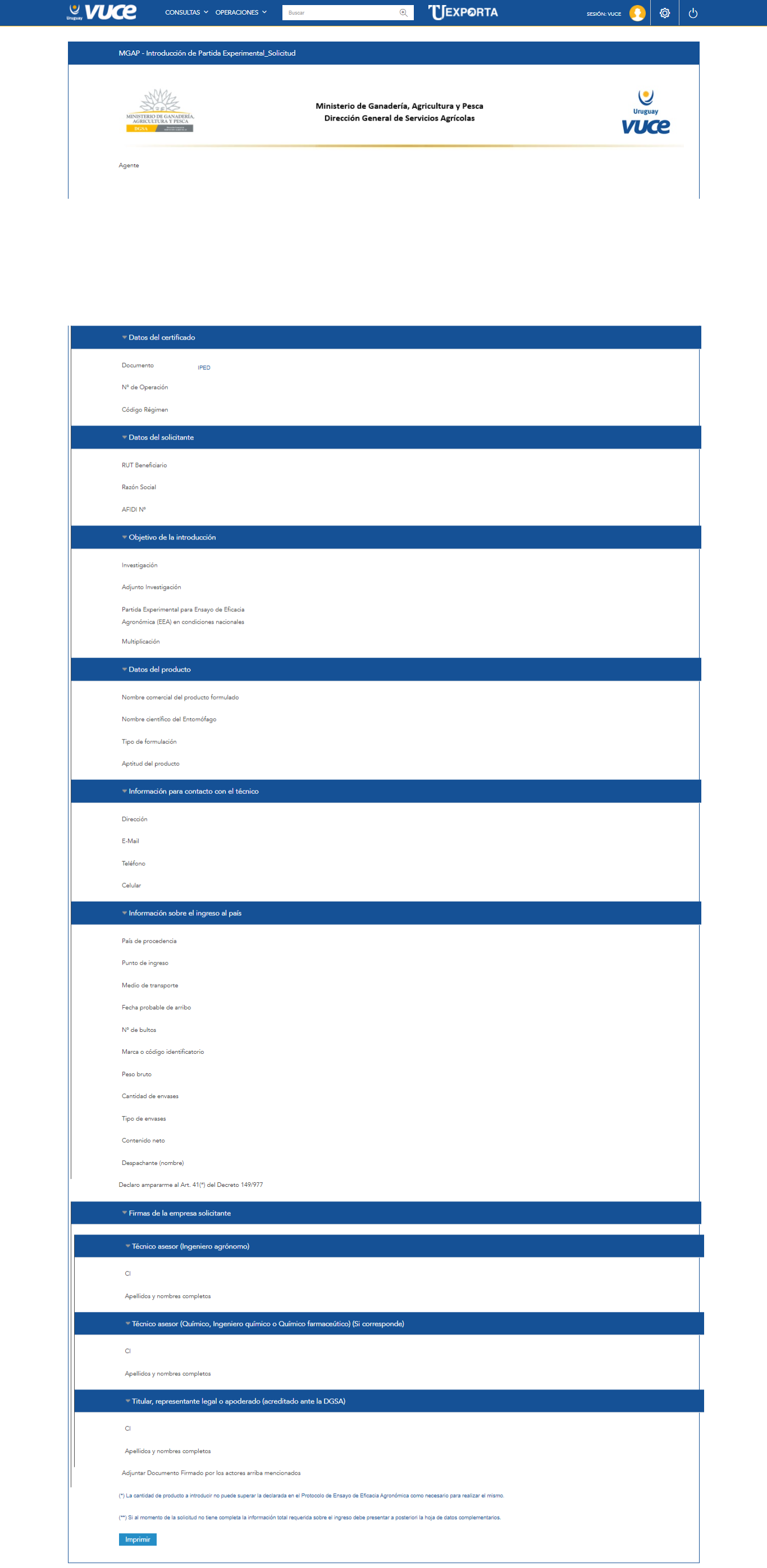 - Trámite: IPED. MGAP. Partidas Experimentales de ACB. Formularios 237B/277B.