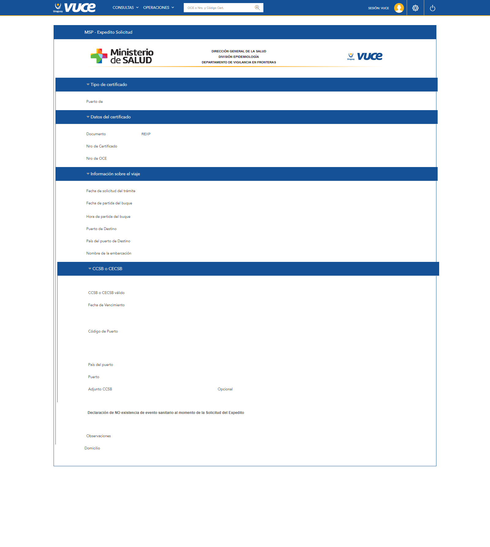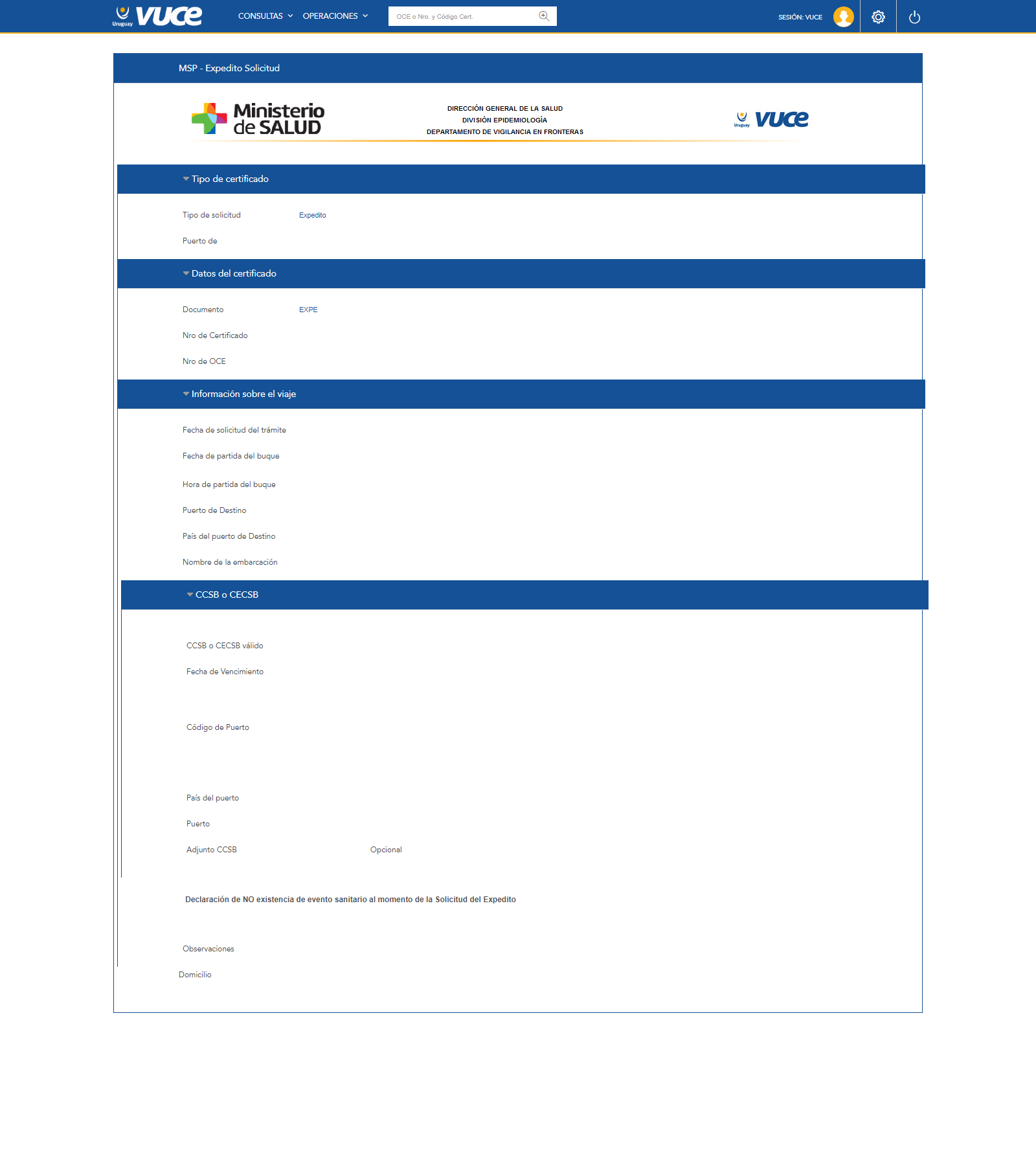 - EXPE: MSP – Certificados para Buques (Libre plática y Expédito)