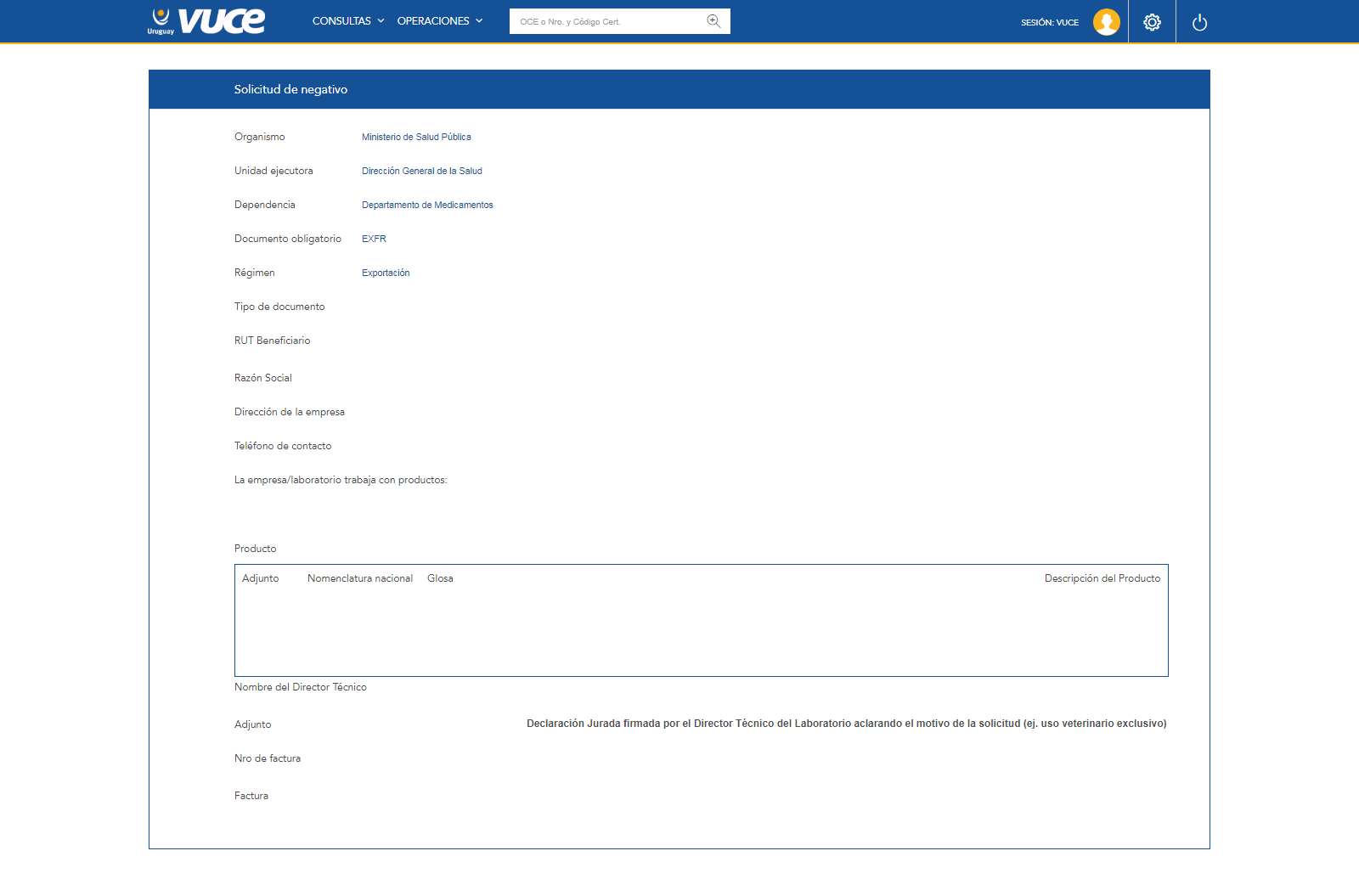¿No corresponde gestionar un documento negativo y debe gestionar un Certificado para la exportación de Especialidades Farmacéuticas expedido por el Departamento de Medicamentos? Consulte aquí el instructivo correspondiente.