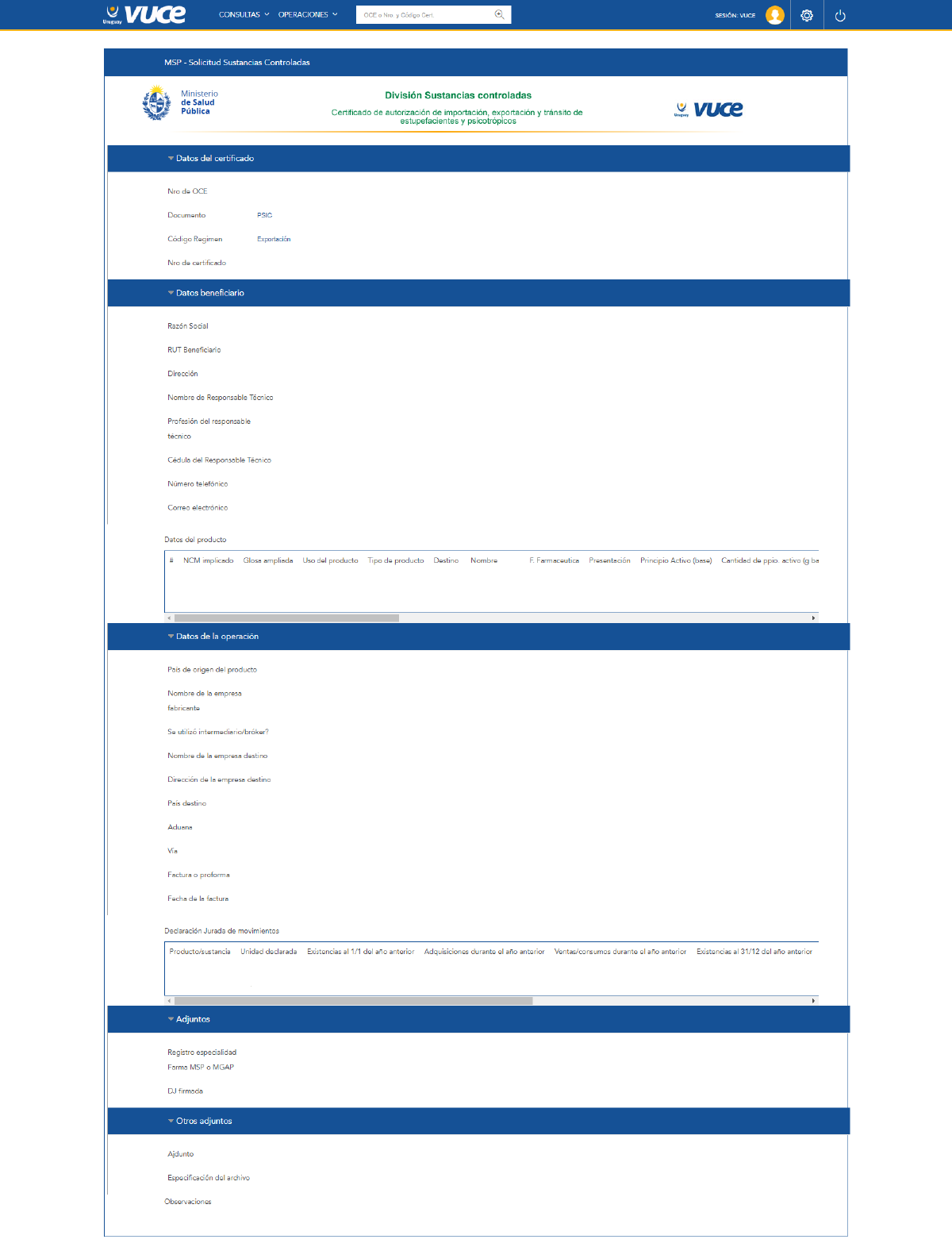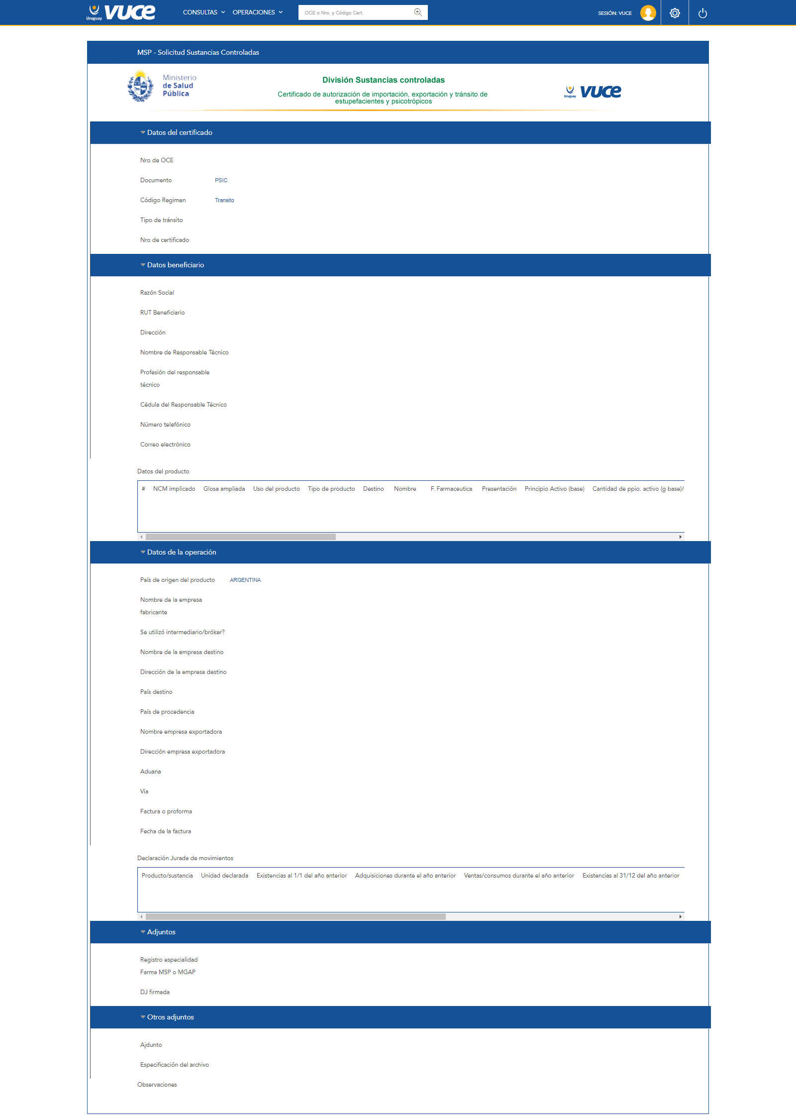 Consiste en la autorización de importación, exportación o tránsito de psicofármacos otorgada por el Ministerio de Salud Pública.