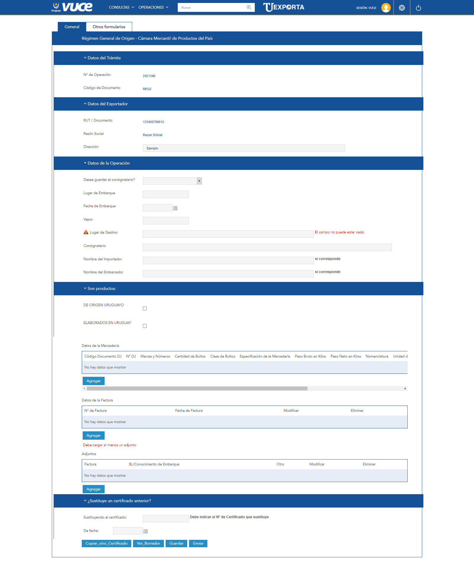 - El usuario que gestiona el trámite de Certificado de Régimen General de Origen deberá figurar en la sección “Personas designadas por la empresa a efectos de solicitar y firmar certificados” del Registro de Empresas ante la Cámara Mercantil de Productos del País, de lo contrario no podrá enviar el trámite.