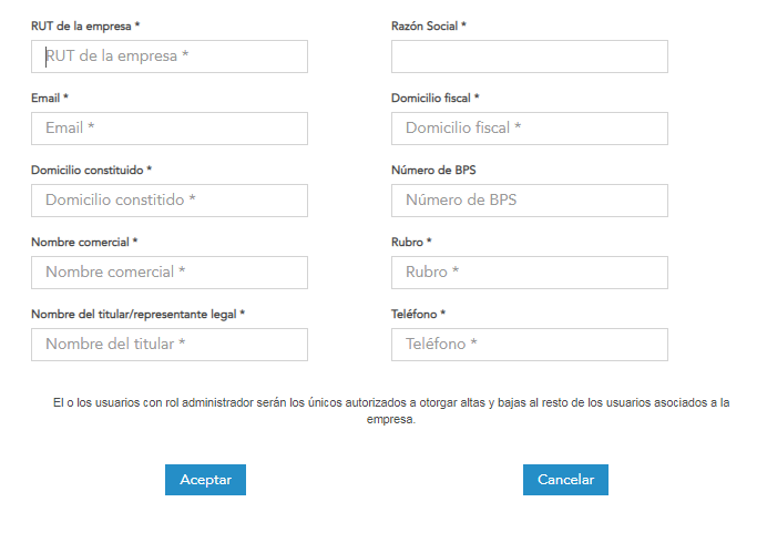El usuario registrado queda asignado como administrador de la empresa; lo que permite, dentro de otras acciones, crear nuevos usuarios asociados a dicha empresa.